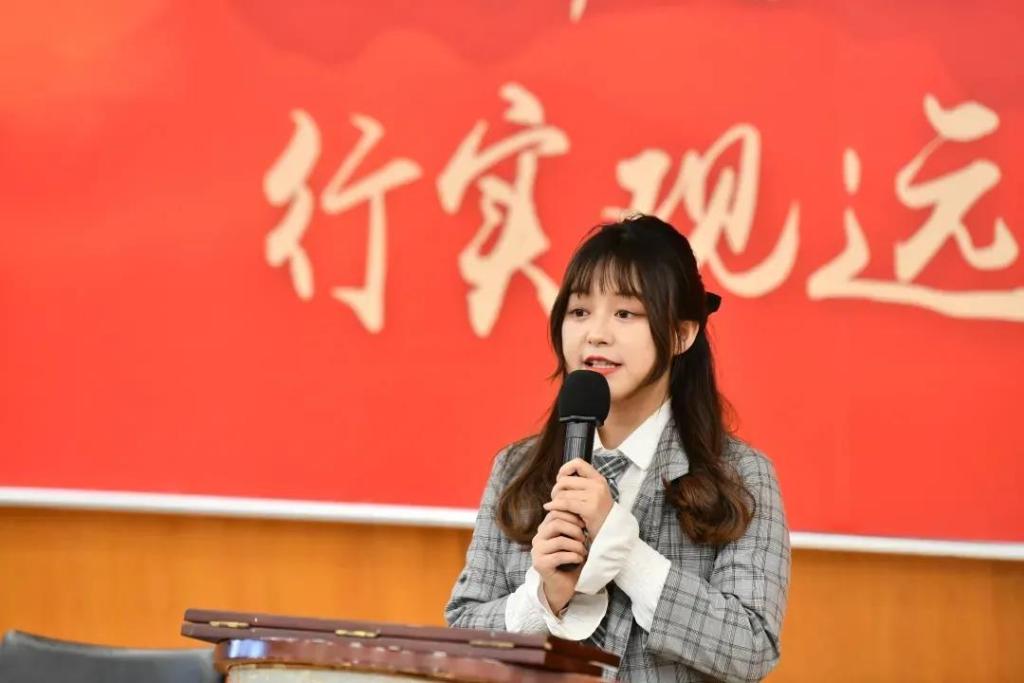 随后,筑梦未来奖学金获得者、2018级本科生吴可意作为学生代表进行发言,她表示管理学院的学生将会铭记诸位理事代表们的温暖关怀和热切期待,在学习与生活中进行更丰富的探索和反思,结合自我理想与社会责任进行道路的规划,不辜负学院和社会的支持和培养。